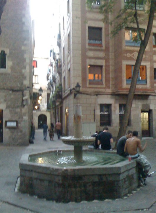 Expectante…sigue caminando…bajo el arco, se detiene a encenderse un cigarro…para saborearlo observando detenidamente la iglesia que, orgullosa, se oculta amenazante tras los estrechos y deteriorados callejones…acalorada por el bochorno veraniego, se aparta con delicadeza las enormes gafas de sol para refrescar, con cierto mimo, su rostro sudoroso….observa con recelo y curiosidad la fauna autóctona cuando uno de ellos le pregunta si tiene papel de liar…se sienta en el bordillo de la fuente para observar durante unos segundos su refrescado reflejo…los desórdenes musicales que emanan de la guitarra de un anónimo aspirante a músico interrumpen sus pensamientos…las estrepitosas carcajadas de una pareja le hacen volver a la realidad…y los impactos de las remotas balas dibujan en su memoria los gritos de aquellos alumnos de la escuela Sant Felip Neri asesinados por la aviación franquista…distraída con las recientes farolas encendidas busca con insistencia su móvil en el bolso para observar que, sin haberse percatado, el tiempo se detuvo al atravesar el carrer de Montjuïc del Bisbe…sorprendida, aprovecha para inmortalizar ese momento que desearía mantener siempre intacto en su retina… click!curiosa, recorre una a una las ventanas encendidas preguntándose por la vida de los habitantes que se esconden en el anonimato…de pronto, una heladora pero gratificante brisa contonea con gracia su dorada melena…y al descubrir las vetustas gárgolas que observan intimidantes un silencioso escalofrío recorre con rapidez su delgado cuerpo…inquieta, desvía su mirada hacia el suelo para observar una sombra que, como por arte de magia, desaparece fugazmente dejando a su paso una brillante estela…consciente de que, de repente, está completamente sola en la plaza, decide volver a recostarse sobre el borde de la fuente para paladear el acogedor silencio que tan sólo interrumpe con disimulo el sonido del agua…hipnotizada, examina el dulce vuelo de una escuálida hoja que termina aterrizando pausadamente sobre la palma de su mano…unas parpadeantes farolas desafían su curiosidad y, decidida, se adentra en otro callejón…cuando, repentinamente, miles de hechizantes luces doradas la envuelven brutalmente para desaparecer una vez que ya ha perdido el conocimiento…el discreto sonido del móvil indicando que tiene un mensaje le despierta de un sobresalto, y un mudo «Dios mío!», resuena en su cabeza… atónita y decepcionada al ser consciente de la realidad, repasa uno por uno los muebles de su dormitorio pintados con cierto sigilo por los madrugadores rayos de sol que se cuelan elegantemente a través de la persiana… al remover con brío su voluminosa melena se percata de las gotas de sudor que refrescan su nuca… un retador «Mensaje recibido» parpadea con insistencia en la pantalla del móvil… desbloquea el aparato y lee el mensaje anónimo… «No ha sido un sueño, guarda el secreto…». Su desconcierto es interrumpido por el ruido del aspirador… «Madre, mía!!! Tengo que contárselo a Isa!», piensa mientras que, de un salto, sale disparada en busca de su compañera de piso… De pronto, a mitad del infinito y aspirado pasillo, se para bruscamente… rápidamente reconoce la misma heladora brisa de su ¿sueño? recorriendo esta vez todo su cuerpo… un torrente de dulces sensaciones hacen que dé media vuelta a la vez que, como un silbido, de su voz todavía dormida sale un afirmante: «Tranquilo… tu secreto está a salvo conmigo…». Y, mientras cierra con una planificada discreción la puerta de su dormitorio, una exuberante y sonora sonrisa se dibuja en sus labios…