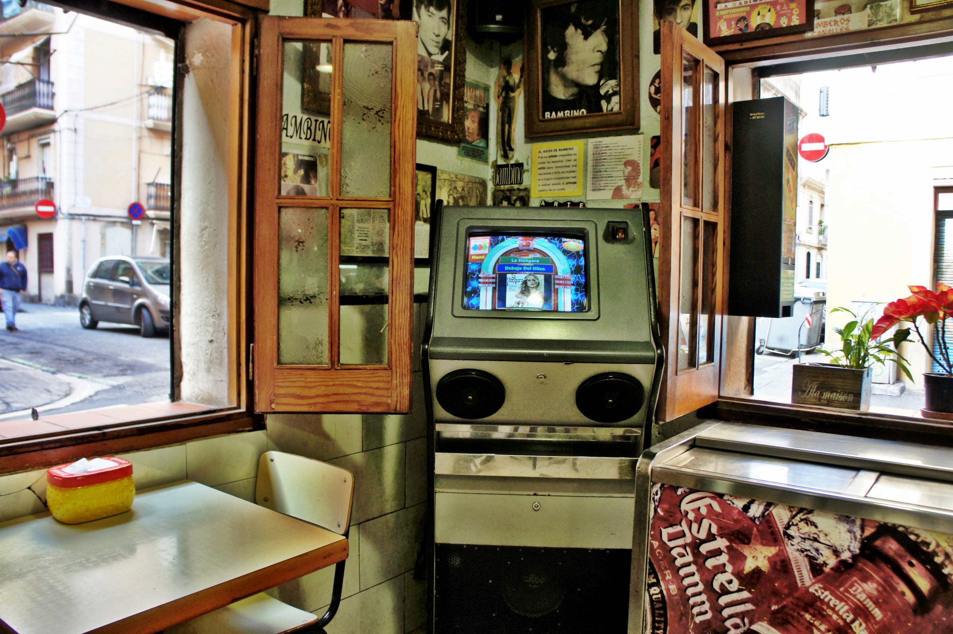 Botellas llenas. Una barra vacía. Asientos libres que algún día alguien ocupó. Por primera vez me siento sola.Tengo que huir, salir por esa puerta y alcanzar ese mundo exterior, que un día abandoné.Tengo que reconstruir mi día a día. Me toca componer un nuevo escenario de paz…… y de fraternidad.Tengo que volver a tocar el cielo y sentir que algún día……el color volverá a mi vida.Ese día en el que alguien me seguirá esperando con los brazos abiertos.Hace mucho que nuestro amor comenzó a tambalearse.Quizá veíamos la vida en colores y formas diferentes.Para ti los peces nadaban, para mí volaban.La puerta del amor se cerró a cal y canto.Las gruesas rejas de las ventanas impedían que saliera cualquier atisbo de ilusión.Nos sentíamos en una calle sin salida.Cualquier opción se cerraba a nuestro paso.Esa vieja máquina de música hacía mucho que había dejado de sonar.Necesitábamos estar siempre con gente, para no sentirnos solos.Sin ti el paseo está vacío……y yo me siento perdida.Siento que la fuente se ha secado.Atrás quedó la esperanza de poder tener un niño.Tú ibas por tu lado, con tus amigos……y yo por el mío, siempre sola.¡Cuántas botellas sin descorchar y cuántos platos por descubrir!Todo se torció a nuestro paso.¿Qué mano negra ha manejado nuestra relación?Yo lo intenté, pero tú seguías tan distante y frío como la piedra.No había milagro posible.Pero hoy he encontrado una nueva manivela en mi vida. Voy a girarla……porque sé que siempre habrá alguien que me tienda su mano.